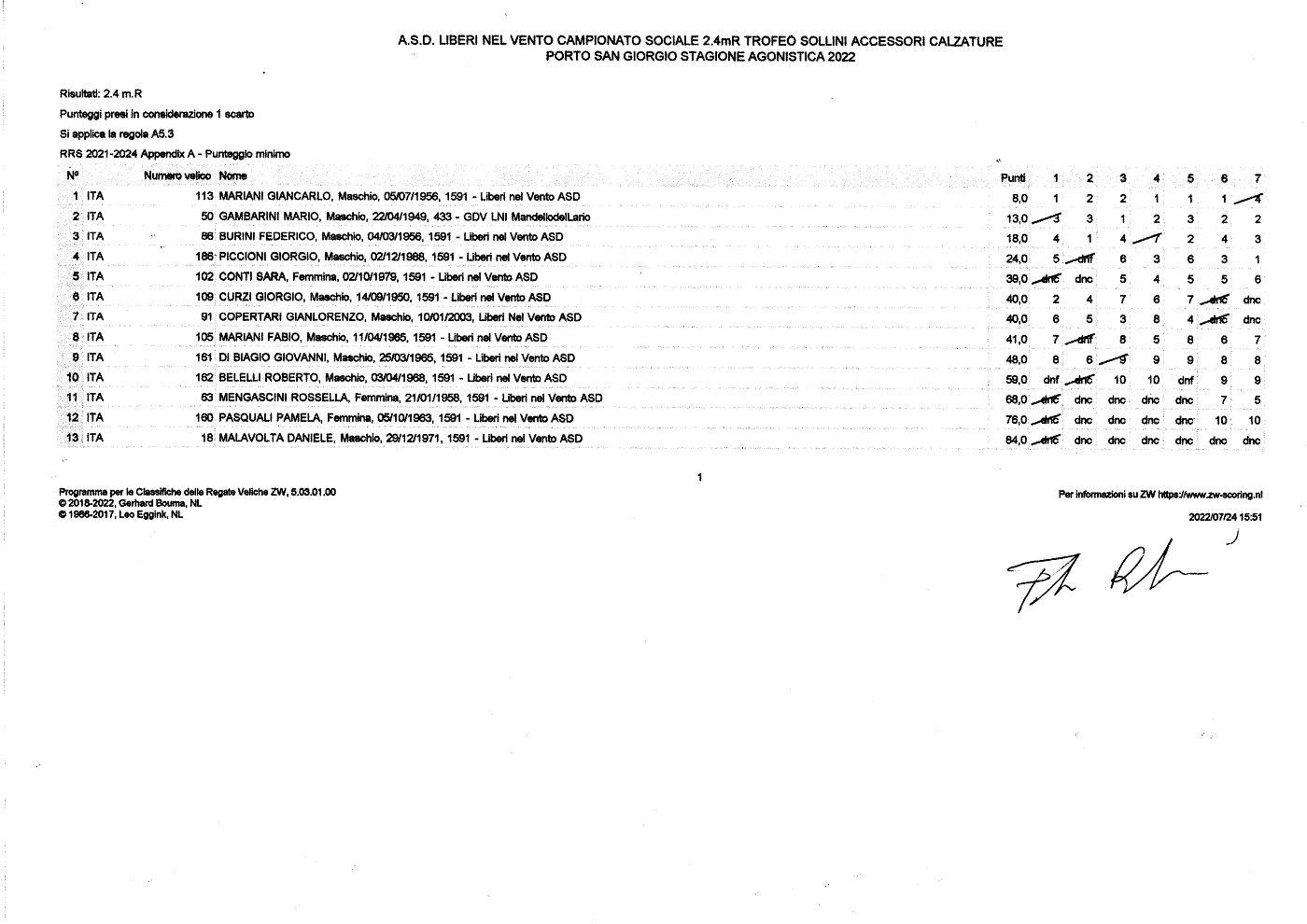 Tutti in acqua domani, timonieri ed imbarcazioni, per la quarta giornata di regate del Campionato Sociale 2.4mR - 2022...