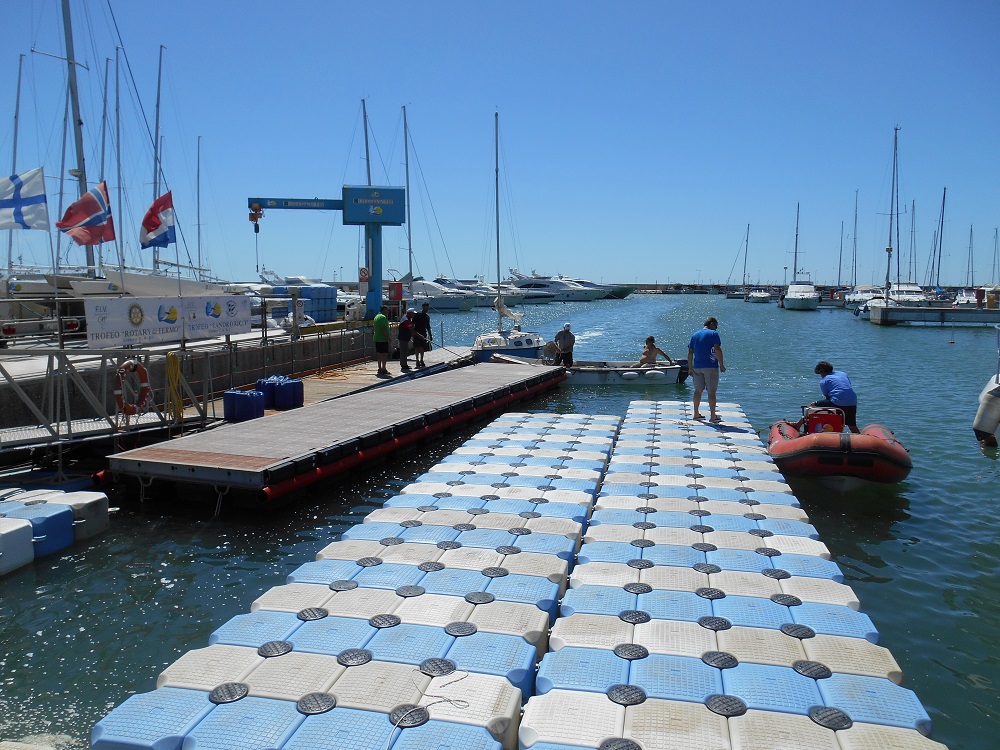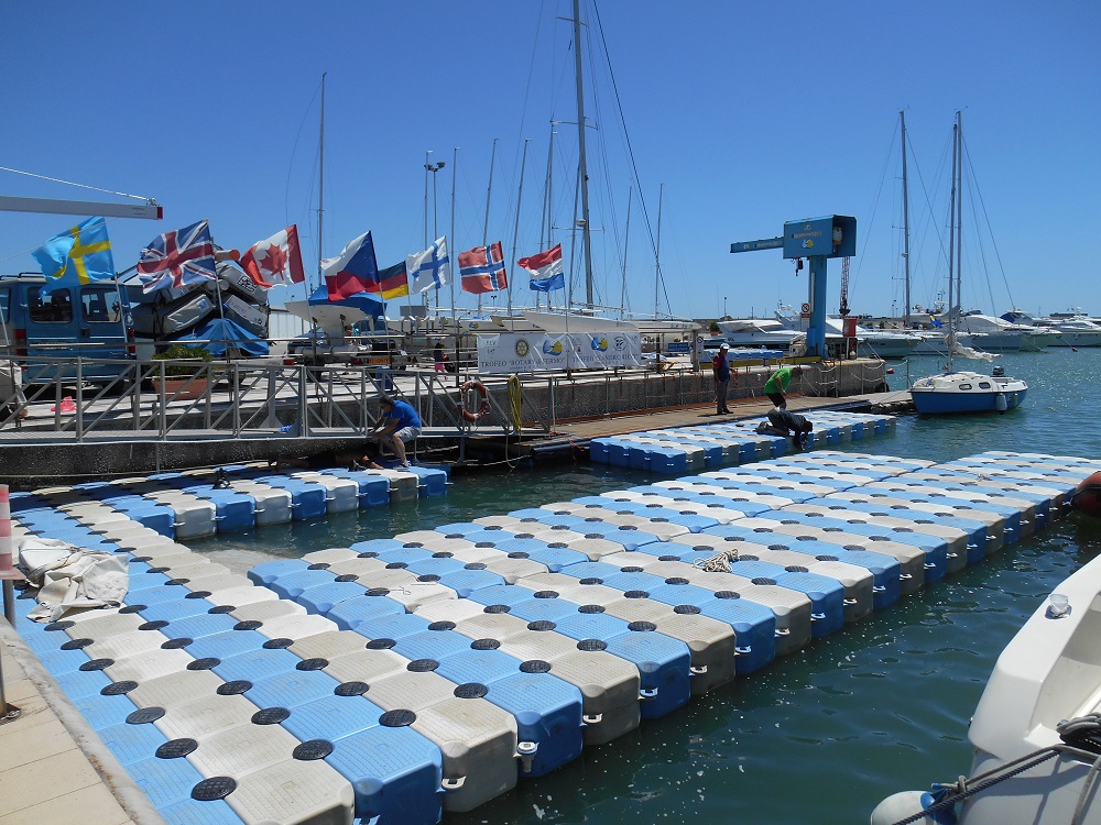 Si lavoro al porto per l'installazione dei nuovi pontili galleggianti. Assemblati l'80% della struttura!!! Una struttura comoda, funzionale e.. bella!!! Foto dei..