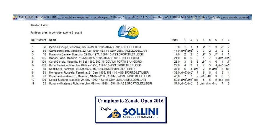 Inziativa realizzata in collaborazione con la Protezione Civile di Porto San Giorgio, C.I.S.O.M. Ordine di Malta, Croce Azzurra di Porto San Giorgio e Lega Navale di Porto San GiorgioGrazie a tutto lo staff della A.s.d. Liberi nel Vento che si è impegnato per la realizzazione di questa entusiasmente edizione 2016 del CAMPIONATO ZONALE 2.4MR E FJ.
