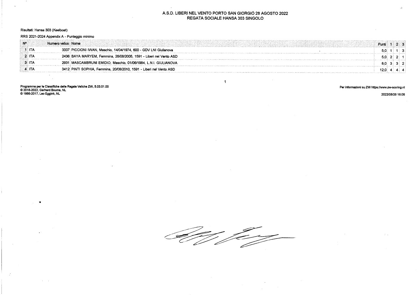 - 31082022 Il podio della classe Hansa 303 categoria singolo vinta da Iwan Piccioni