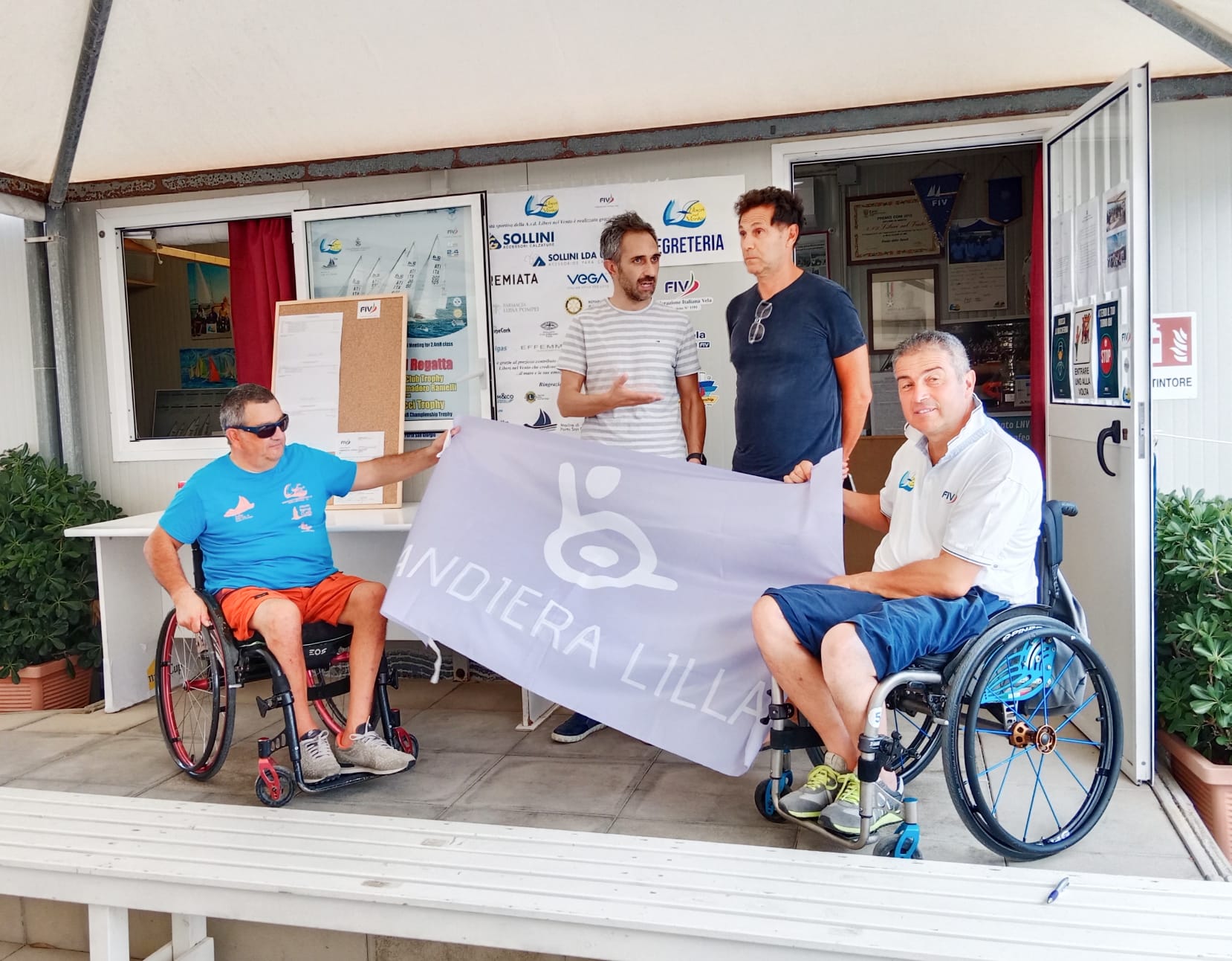 Presente alla cerimonia il Sindaco di Porto San Giorgio Dott. Valerio Vesprini che ha consegnato allo staff della Liberi nel Vento la Bandiera Lilla recentemente assegnata alla Città di Porto San Giorgio. Sindaco che ha detto: “Per tutti noi è una giornata importante ed anche emozionante perchè poter consegnare a questa associazione il vessillo che riconosce a Porto San Giorgio il valore di città accessibile, è la chiusura di un bel capitolo di storia cittadina.