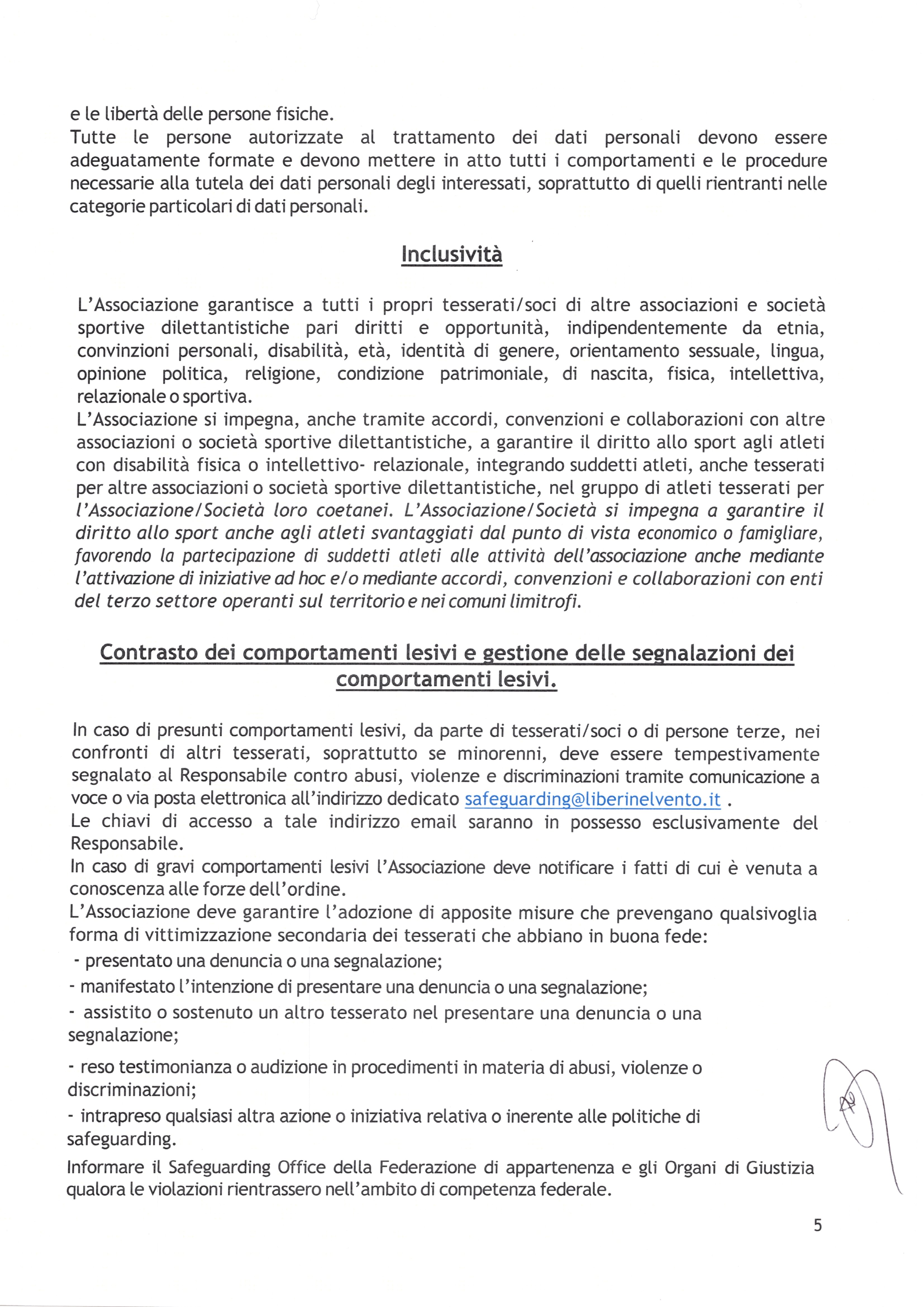 MENGASCINI ROSSELLA reperible al numero +393286257099 o a mezzo email a: safeguarding@liberinelvento.it