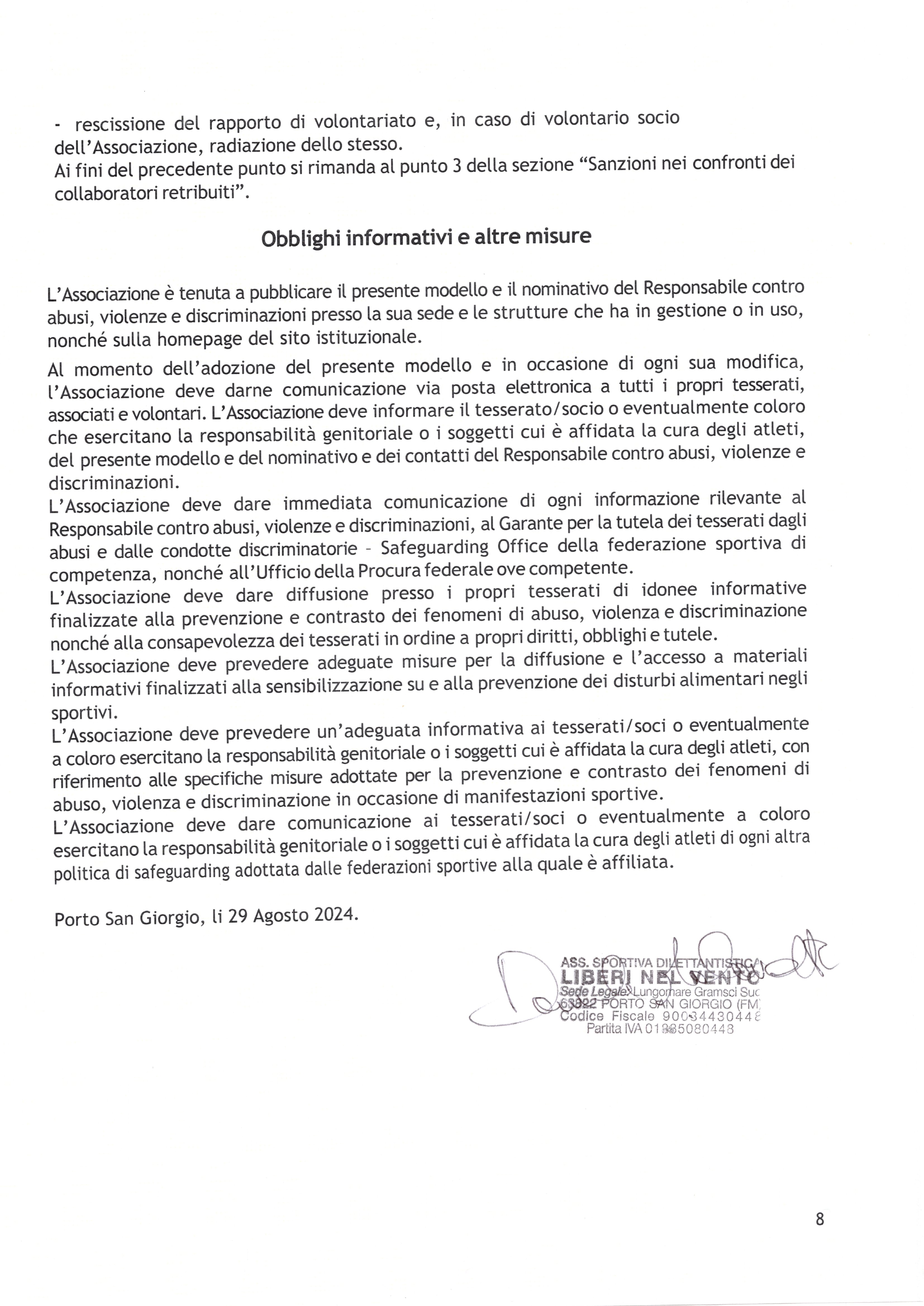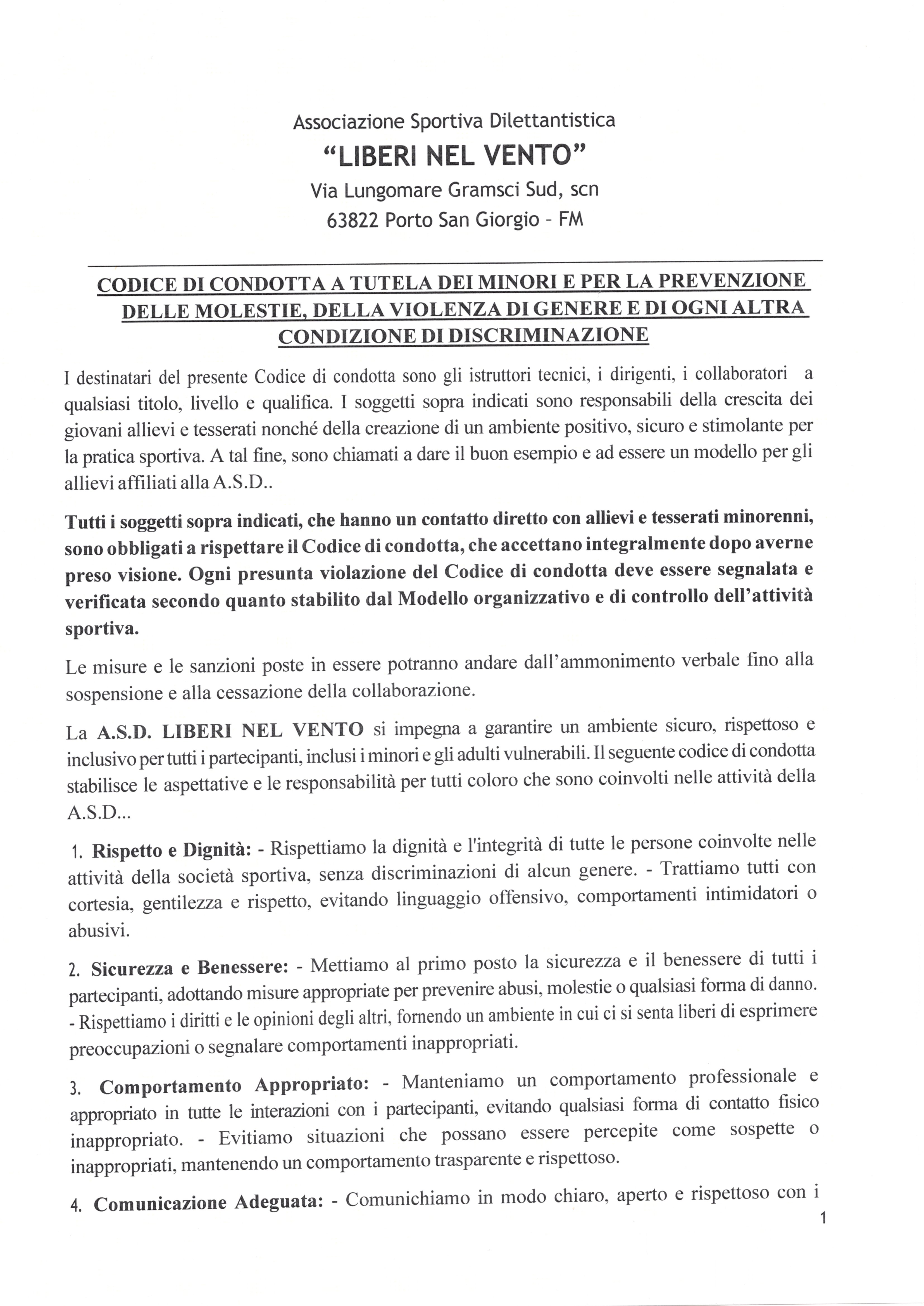 NOMINA SAFEGUARDING - MODELLO ORGANIZZATIVO GESTIONALE - CODICE DI CONDOTTA