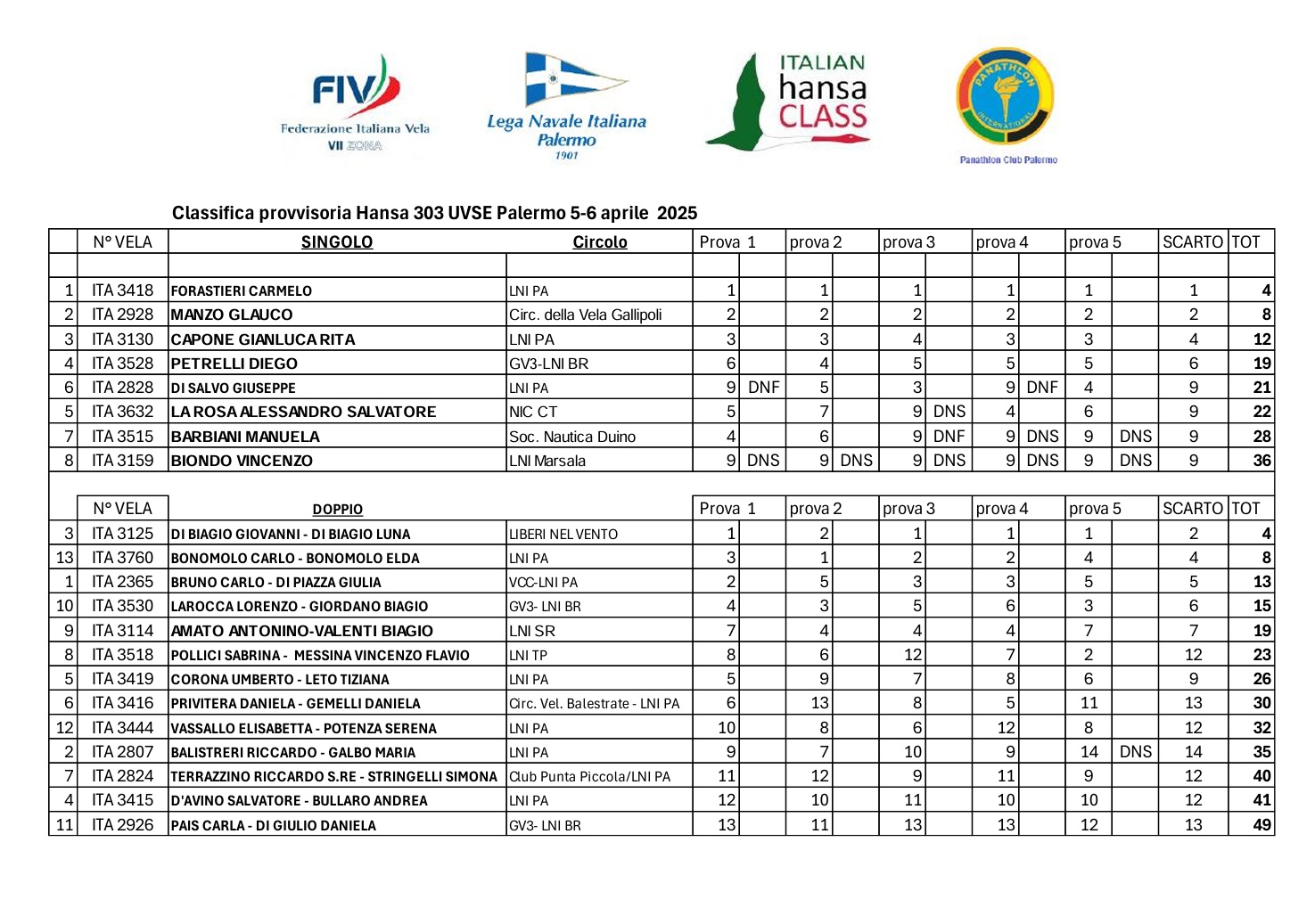 Nella categoria Hansa 303 singolo vittoria di Carmelo Forastieri (LNI Palermo) davanti Glauco Manzo (GV3 Brindisi) e Gianluca Capone (LNI Palermo).